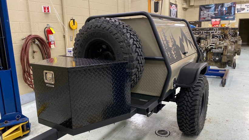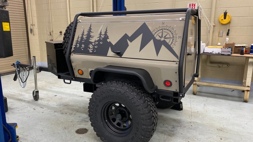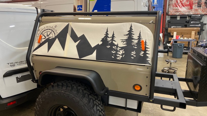 The next phase was to finish up little details of the trailer. A quick trip over to Miller Decals was in order for them to lay on a mountain scene on each of the side doors. The graphic was purchased from a store on Etsy.